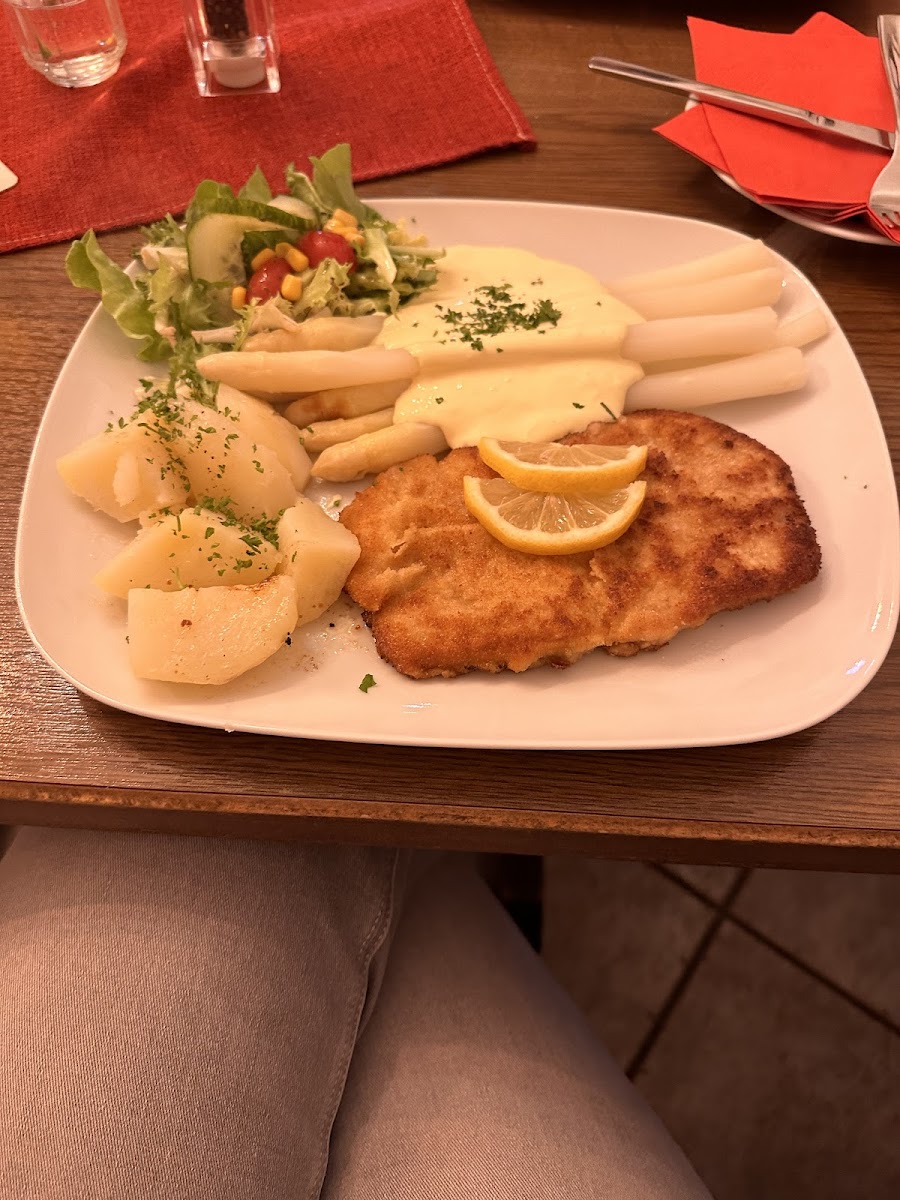 One of the standout features of the menu at Restaurant Zum Birkenhof is its Schnitzel Mit Pilzsoße, a deliciously crispy schnitzel served with a rich mushroom sauce that’s packed with flavor. Another favorite among locals and visitors is the Schnitzel Mit Würzfleich Und Pommes Frites, a comforting dish combining perfectly cooked schnitzel with a savory spiced meat topping, paired with golden fries that complete the meal beautifully.